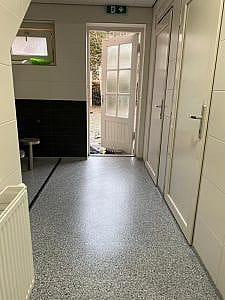De chipsvloer is tevens na afwerking licht anti slip door de structuur van de flakes en is eenvoudig te onderhouden door middel van een neutraal reiniger.