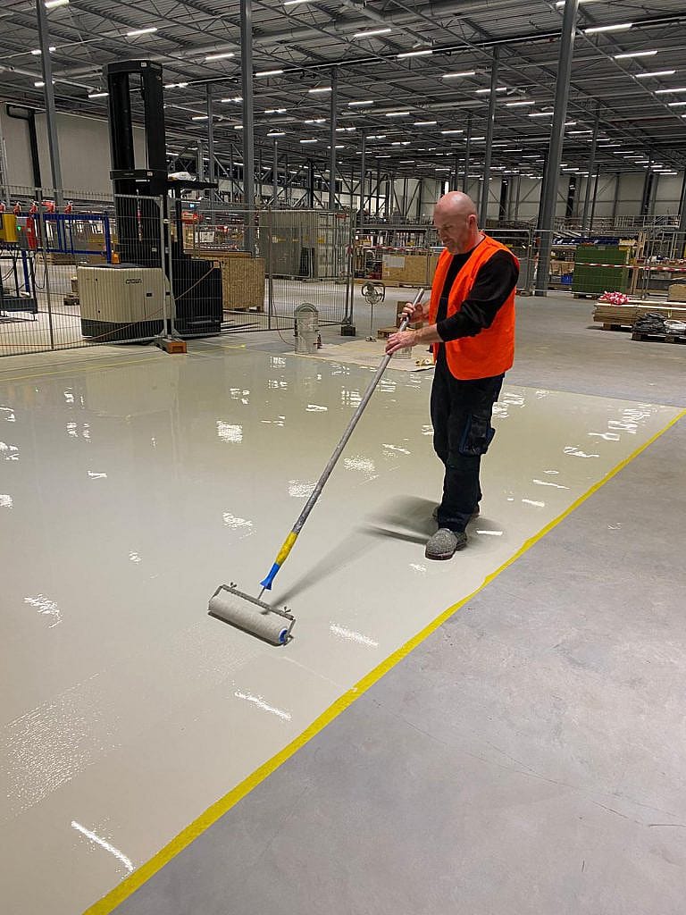 Een coatingvloer is een 1 of 2 componenten vloer die bestaat uit polyurethaan epoxy of acrylaat. Een coatingvloer heeft veel overeenkomsten met een gietvloer, maar heeft een veel dunnere laagdikte. De coating wordt met een roller aangebracht over de vloer. Deze coating is over het algemeen niet dikker dan 1 mm. Dit maakt de coatingvloer prijstechnisch zeer aantrekkelijk. Epoxyharsen worden als basis gebruikt voor een coatingvloer. In de fabriek wordt hier vervolgens de gewenste vulstoffen en kleurstoffen aan toegevoegd. U kunt kiezen uit verschillende standaard kleuren, maar ook bijna alle RAL-kleuren. U heeft daarnaast de mogelijkheid om vlokken te laten strooien in uw coating vloer.